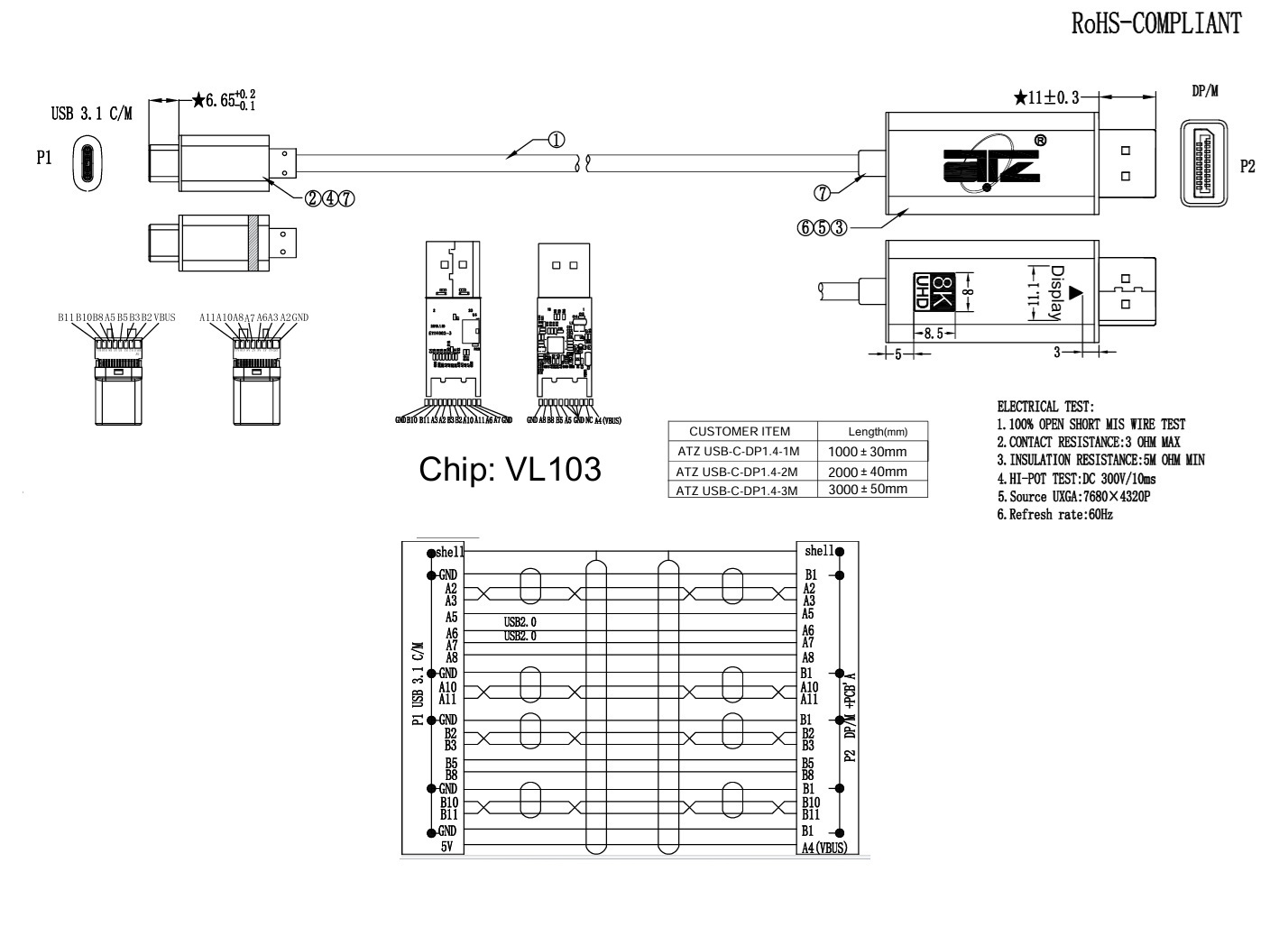 This Active ATZ USB C to DisplayPort 1.4 (DP) Cable 8K 60Hz will provide higher resolution than normal 4K cables on the market. It can easily stream video from laptops, tablets, desktop, consoles and smartphones with USB C ports directly to monitors, TV, 8k UHDTV and projectors equipped with DP ports.