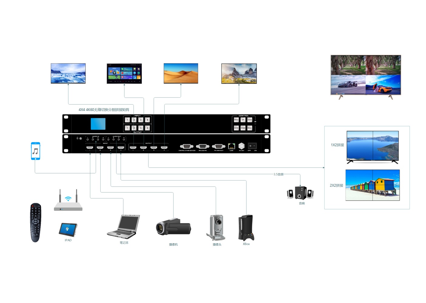 - 4x HDMI2.0 outputs with 3.5mm audio de-embedded for each output