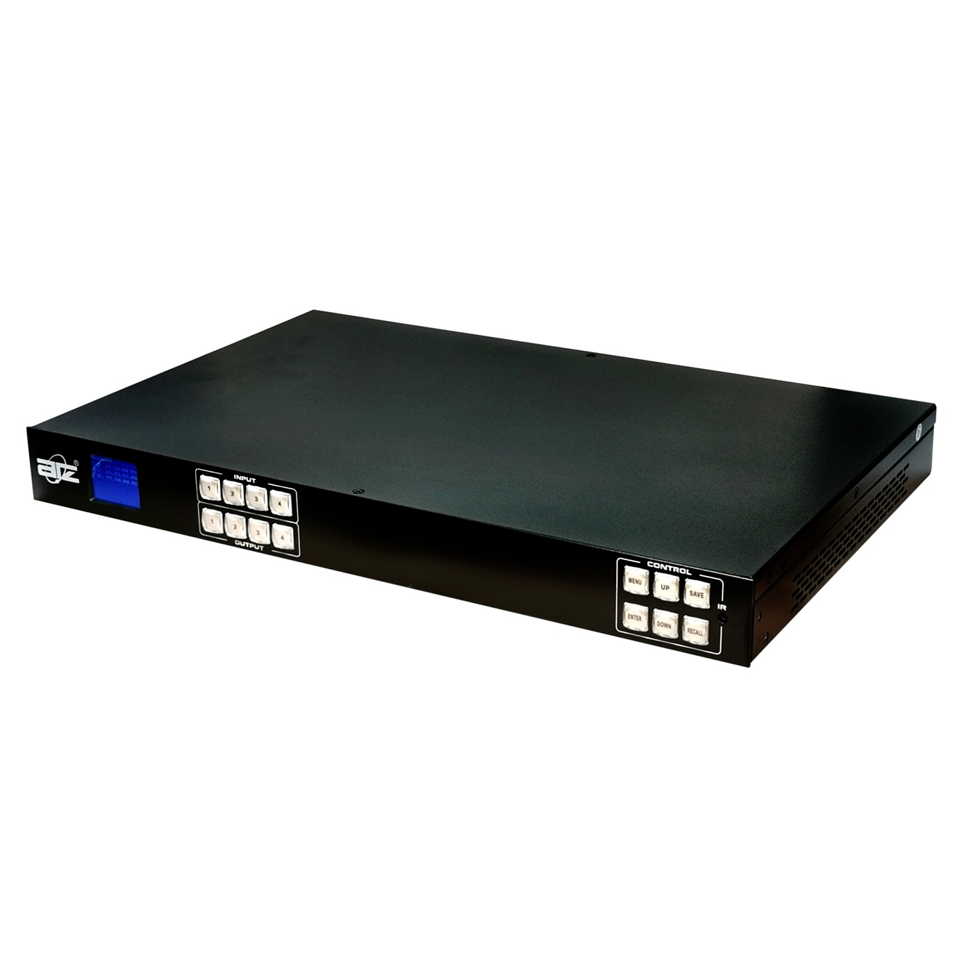 This is a new fixed 4K60 4:4:4: HDMI matrix switcher with 4 HDMI2.0 inputs and 4 HDMI2.0 outputs, the resolution can up to 4K60Hz 4:4:4 and all ports are HDCP2.2 compliant. With the friendly user control methods by IR remote control, 2-Press push buttons with background blue light, WEB GUI, APP and RS232/UDP commands, this matrix switcher can work with the Blu-Ray Players, Set-Top boxes, Home Theater, and game consoles etc HDMI input sources to route to the HDMI displays, it has been widely used in different audio visual applications.