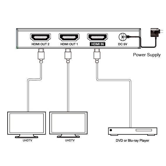 1×2 HDMI 18Gbps Splitter is an advanced solution for splitting a HDMI content to 2 HDMI outputs synchronously. It provides high performance audio and video up to 4K2K@60Hz (4:4:4) and is capable of receiving, retiming and transmitting up to 18Gbps of bandwidth with no data loss.